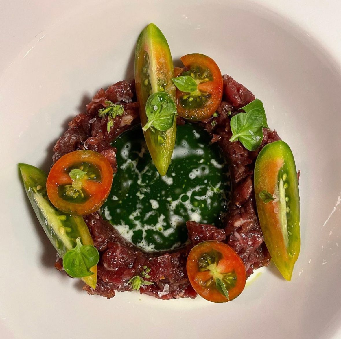 - Tartare di bufala, pomodorino, basilico e mozzarella di bufala