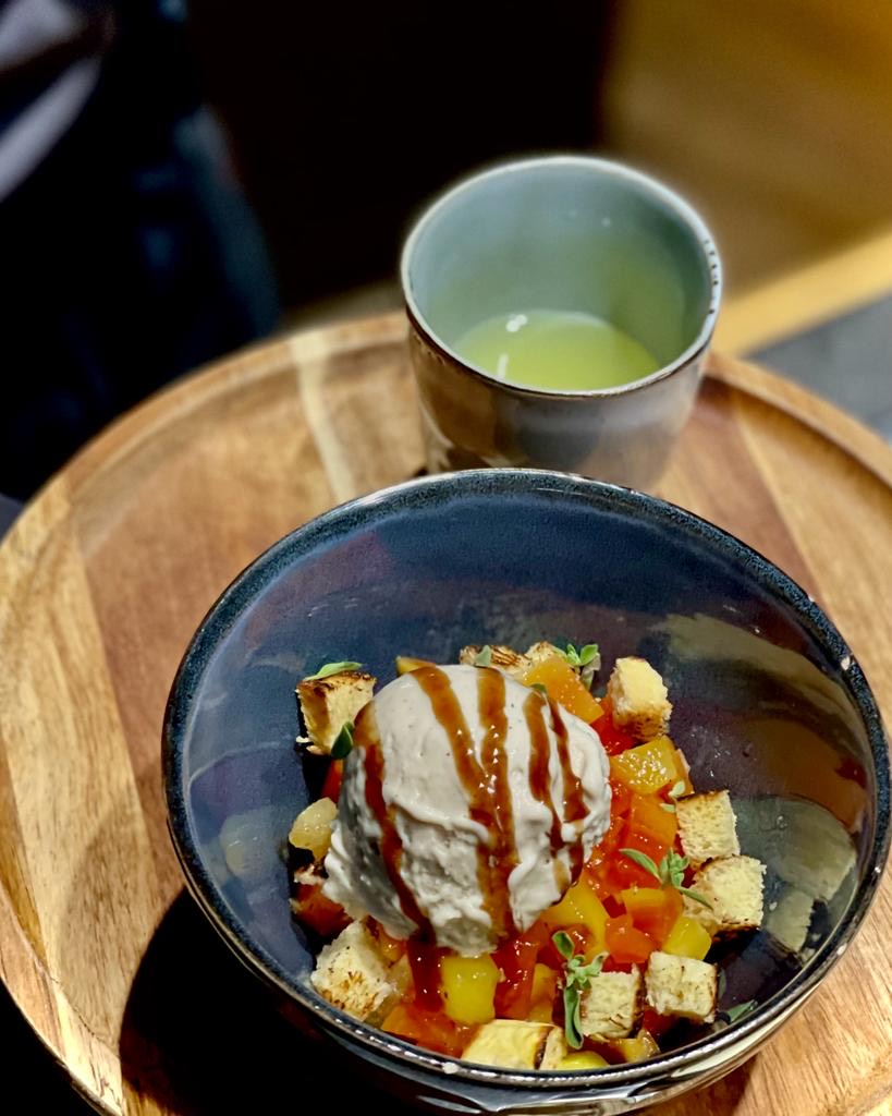 - Macedonia esotica, pan brioche e gelato al tè Earl Grey