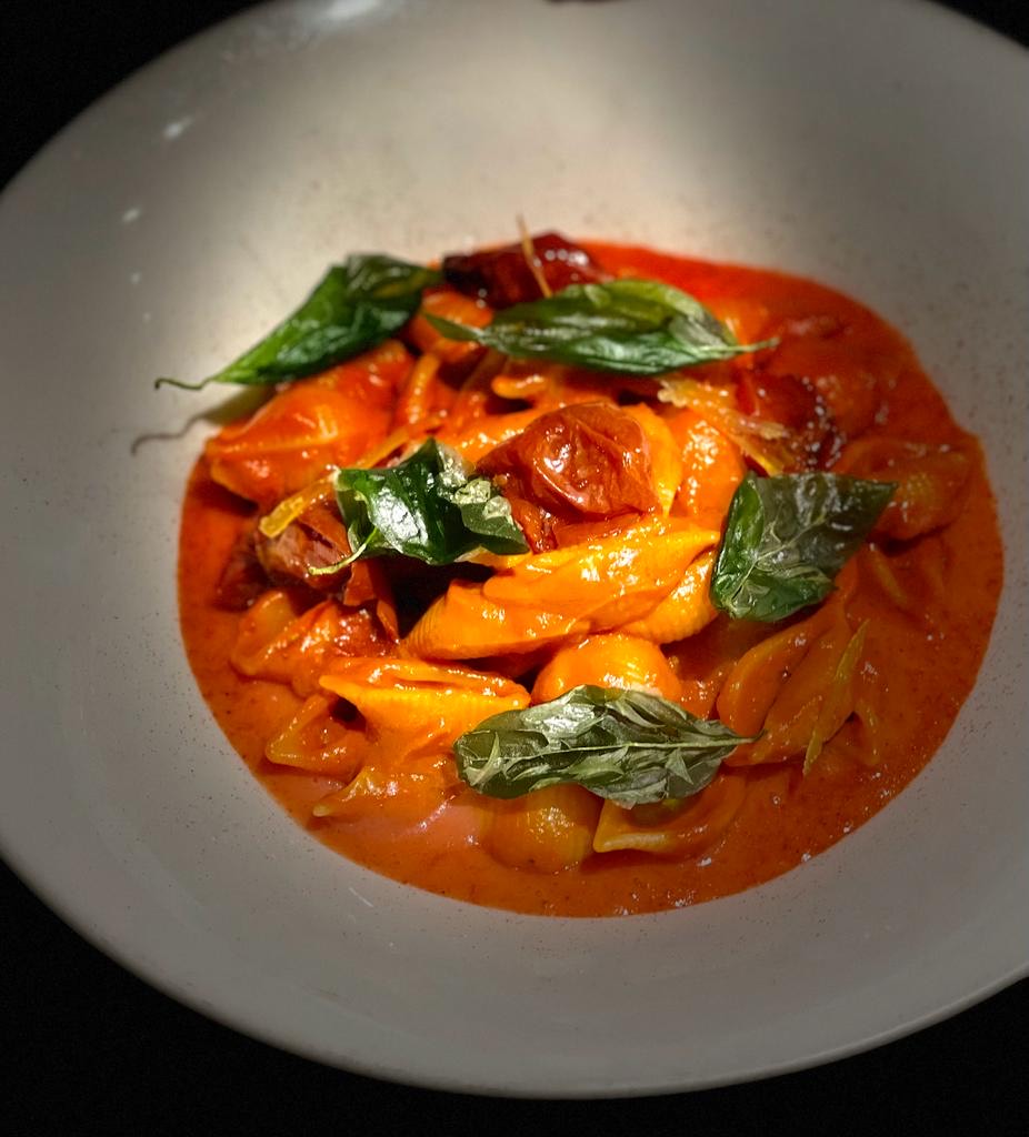 - Chiocciole ai 4 pomodori, basilico fritto e limone candito