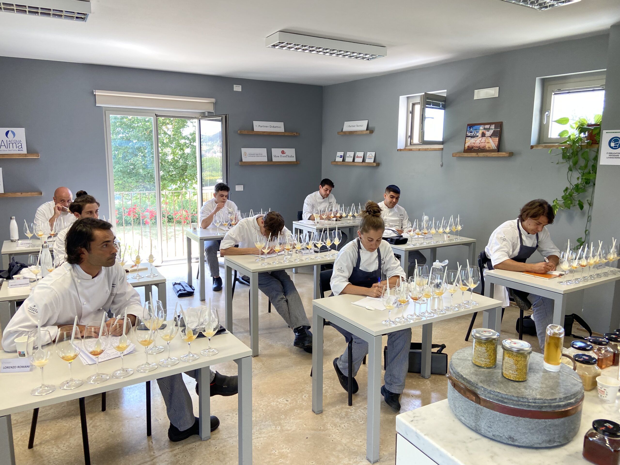 A poco più di un anno dall’incidente che ha portato via Andrea Paternoster, l’apicoltore d’avanguardia creatore del marchio Mieli Thun e docente dell’Accademia Niko Romito, l’Accademia ha ospitato la figlia Francesca per la lezione sul miele. Da sempre l’appuntamento con la lezione del miele rappresenta, per gli allievi, la scoperta di un mondo affascinante, fatto di aromi e di colori, ma soprattutto di vita. Perché le api – attraverso l’impollinazione – danno vita e arricchiscono la natura di biodiversità. Non a caso quella del miele è considerata una tra le lezioni più interessanti del corso professionale di cucina.