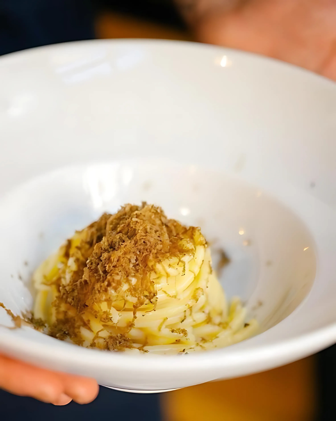Dopo altre esperienze – prima chef nel ristorante di un amico, poi impegnato a organizzare catering e menu per eventi e matrimoni -, Francesco Barra decide che è arrivato il momento di aprire un ristorante tutto suo. «A settembre del 2024 ha iniziato a prendere vita il progetto del ristorante “Becco”, che era il nome usato con gli amici per chiamarci», riprende a raccontare l’ex allievo. «Il 2 agosto 2025 l’inaugurazione a Sora, con un menù essenziale e tanto territorio».