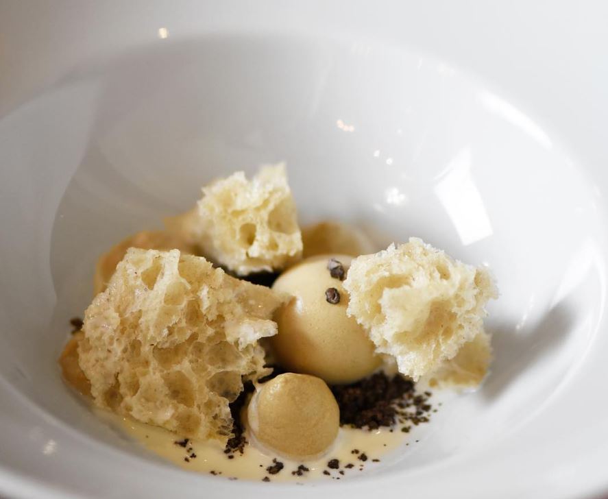 Con la stella l’ex allievo ha creato anche due menù degustazione, uno da 5 e l’altro da 8 portate. «In ogni caso nella carta del ristorante continuano ad esserci i piatti storici, come il senza spaghetto alle vongole, lo spaghettino glassato provola e zafferano, la lattuga come un’insalata mista, o quelli ispirati alla cucina napoletana, come peperone arrosto, limone e rucola, o alla terra d’Abruzzo, come animelle, pecorino di Farindola e maggiorana. Come dolce abbiamo un’altra proposta della tradizione: Pane latte e caffè, rivisitazione della zuppa di latte che si faceva a colazione. Un simbolo italiano che gioca molto sulle temperature e le consistenze, con un crumble di cacao amaro alla base, che alla masticazione ricorda la crosta del pane, con sopra semifreddo al caffè e crema al latte calda nella cui bagna trovi la mollica del nostro pane, fatto con Senatore Cappelli e patate». Tra sfumature, profumi, giochi di consistenze e di sapori forti e decisi, la cucina di Pierluigi Gallo continua a donare grandi emozioni. Un percorso avviato tredici anni fa e che continua a porre attenzione alla tradizione e a puntare all’esaltazione della materia prima, nel rispetto delle sue caratteristiche. Il prossimo obiettivo di chef Gallo? Spingere ancora in avanti il limite, naturalmente.