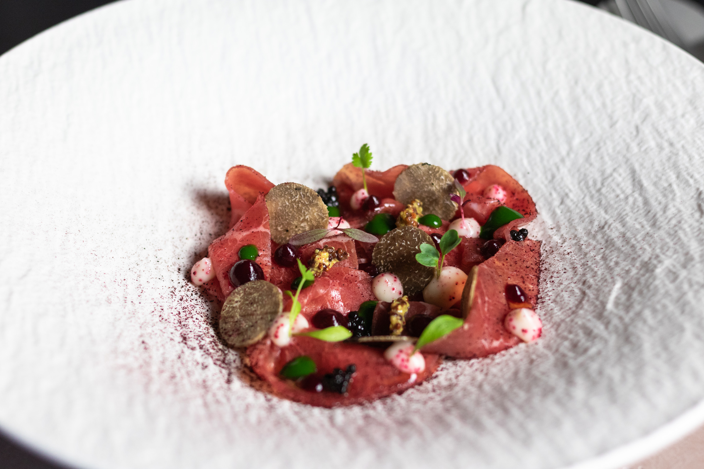 «Il piatto che più mi rappresenta tra i primi è il Tortello di pecora al ragù con zafferano, caciocavallo e tartufo», elenca lo chef. «Tra i secondi il Maialino bieta e mela e tra i dessert la Panna cotta con miele, polline, limone e pepe di Sichuan. Ma io aggiungerei anche il gelato alla mela, con una parte della mela che viene cucinata con la buccia e un’altra con la cannella, per poi ricavarne varie consistenze. Tutte le mie preparazioni hanno come ingredienti principali la materia prima di questo territorio».