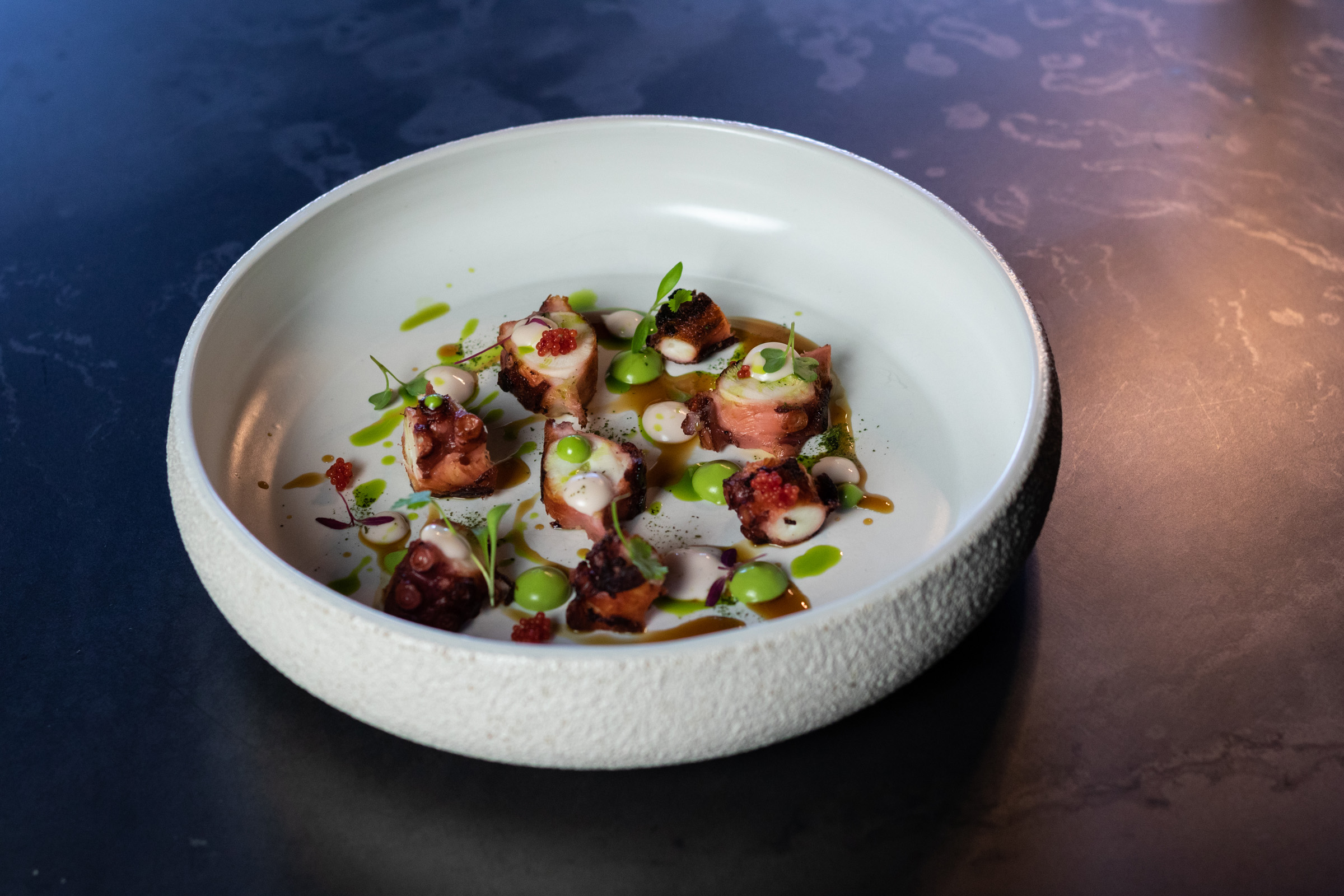 Con l’arrivo della pandemia la proprietà di Borgotufi comincia a ragionare con Marco sulla possibilità di non legare la ristorazione all’hotel e alle colazioni. «Si avvertiva il bisogno di creare un ristorante più intimo, comunque scollegato dal lavoro dell’albergo diffuso», riprende chef Pasquarelli. «Abbiamo realizzato quindi un progetto di ristorante che ha “occupato” 4 casette indipendenti, dove al posto degli alloggi abbiamo realizzato cucina, sala, cantina e servizi. Un bell’investimento, dal quale è nato un ristorante da 30 coperti inaugurato il 28 dicembre 2022. Sulla carta abbiamo piatti realizzati con materie prime provenienti principalmente dal nostro territorio, tra l’Abruzzo e il Molise».