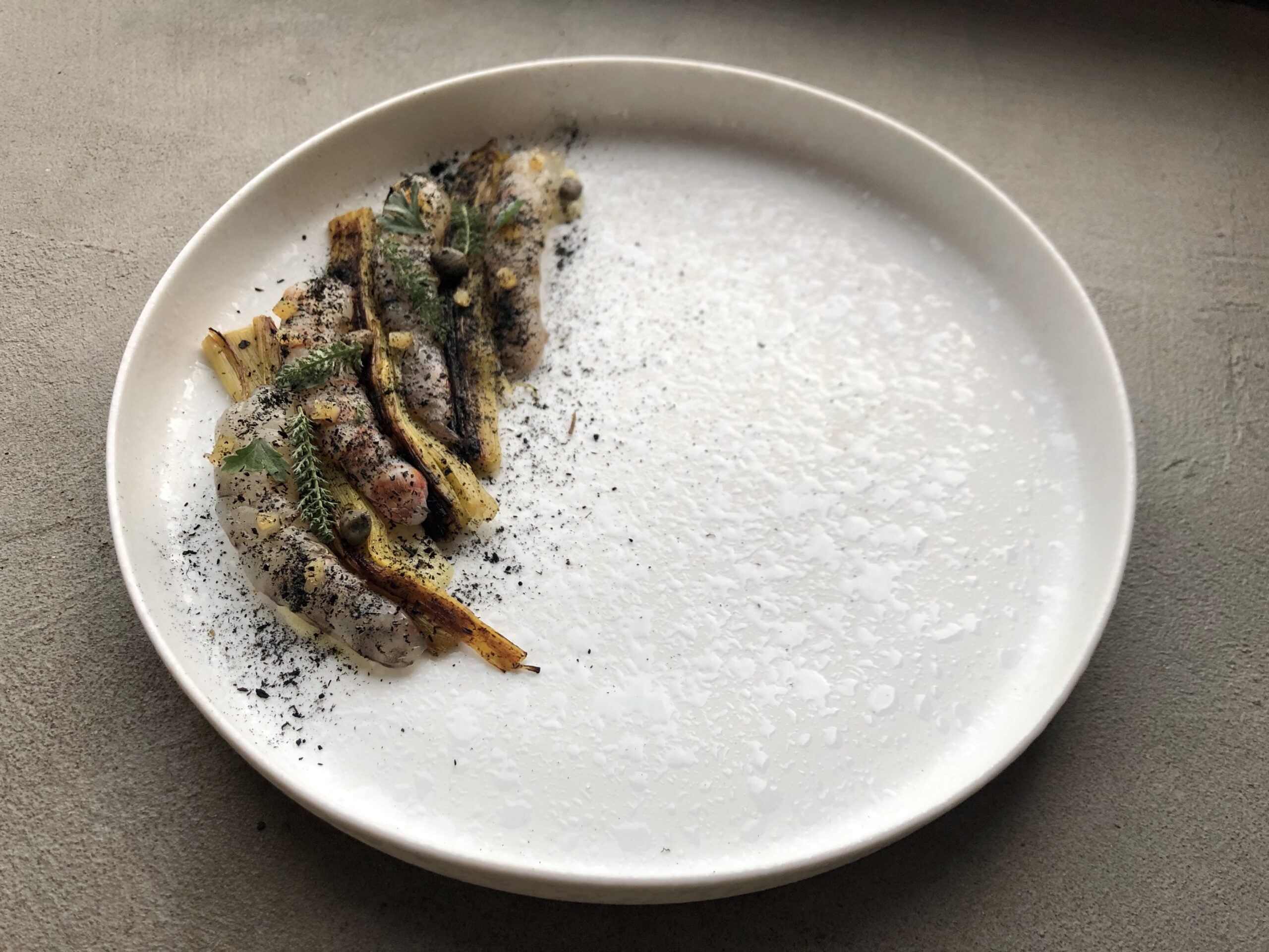 Conclusi i sei mesi di scuola a Castel di Sangro, il cuoco veneziano parte per il tirocinio curricolare. La sua destinazione è il ristorante Le Calandre a Rubano, in provincia di Padova, nella cucina dello chef stellato Massimiliano Alajmo. «Volevo avvicinarmi a casa e andare a Padova mi ha favorito molto», continua Nicolò. «Ho lavorato per 4 mesi alle Calandre e gli ultimi 2 mesi al Quadri di Venezia. Praticamente ho studiato in casa». Concluso il tirocinio, l’allievo torna in Accademia per l’esame finale. «Il tema dell’esame era pesce azzurro e crostacei», continua Nicolò. «Il piatto che ho presentato era Mazzancolle marinate con creme brulé all’aringa affumicata e porro bruciato. Un piatto rischioso, perché metteva insieme il pesce azzurro con l’aringa affumicata, ma ho preso il voto più alto dalla commissione e ho vinto anche la borsa di studio. Non solo: ce l’ho ancora nel mio menù».