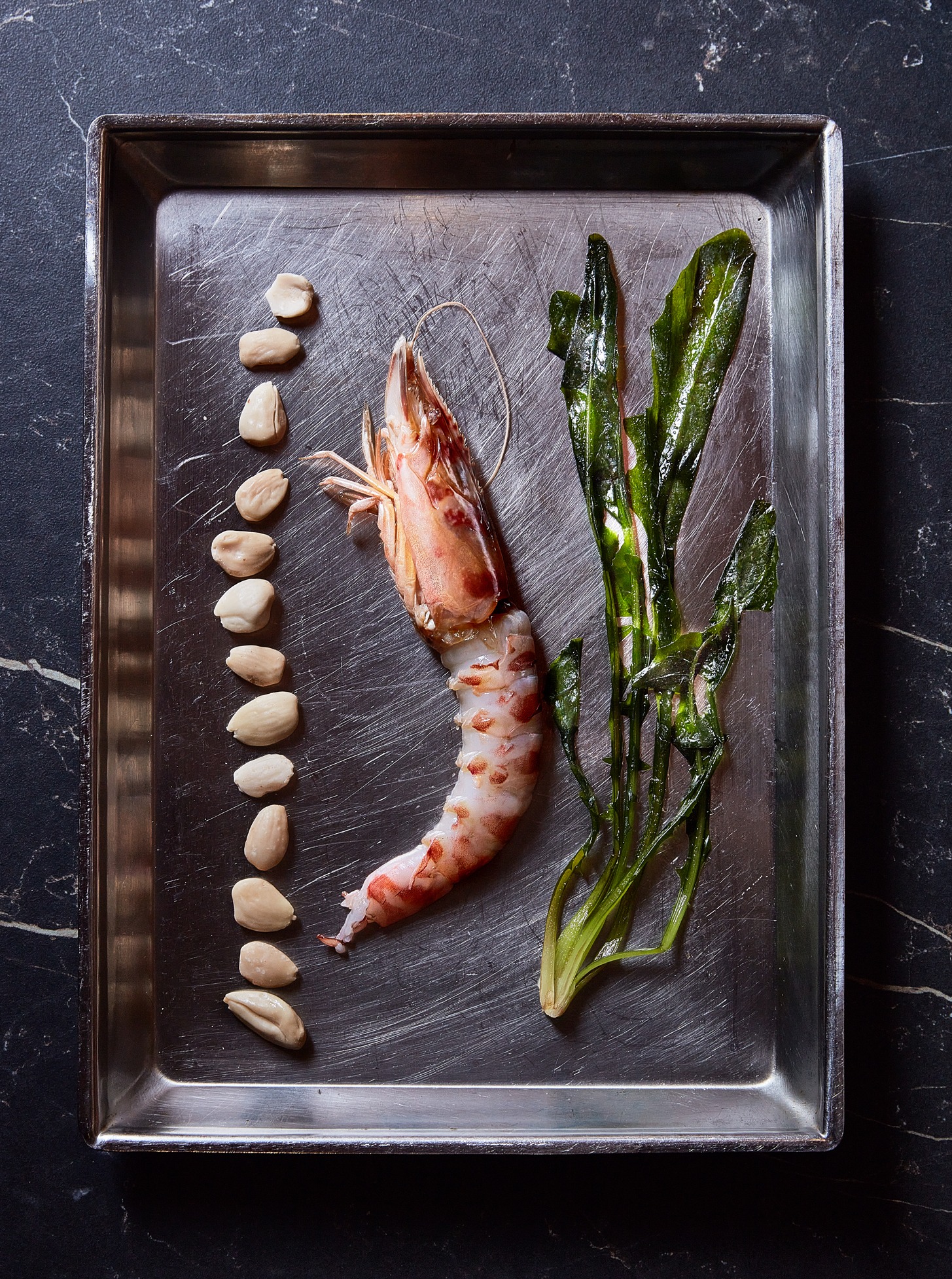 - Mazzancolla, mandorle e cicoria