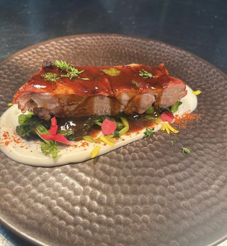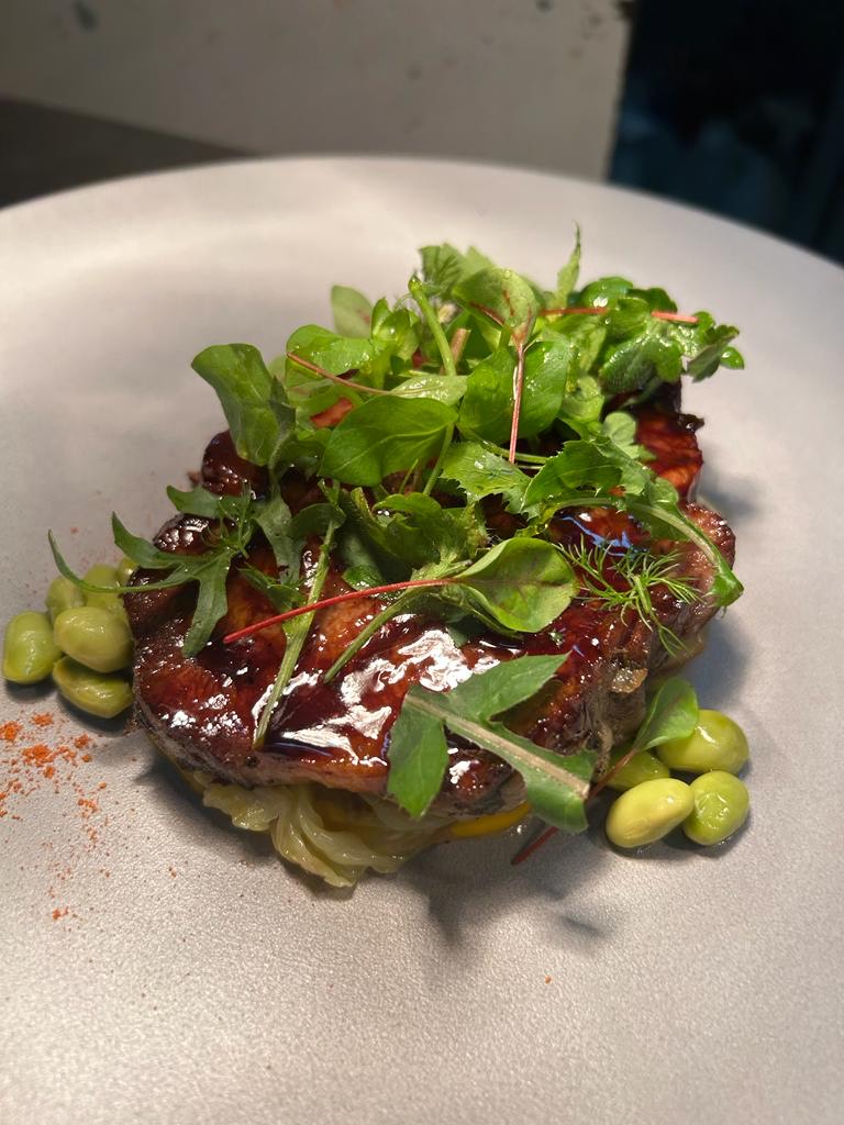 - Maialino nero nostrano, salsa hoisin, fave ed erbette spontanee