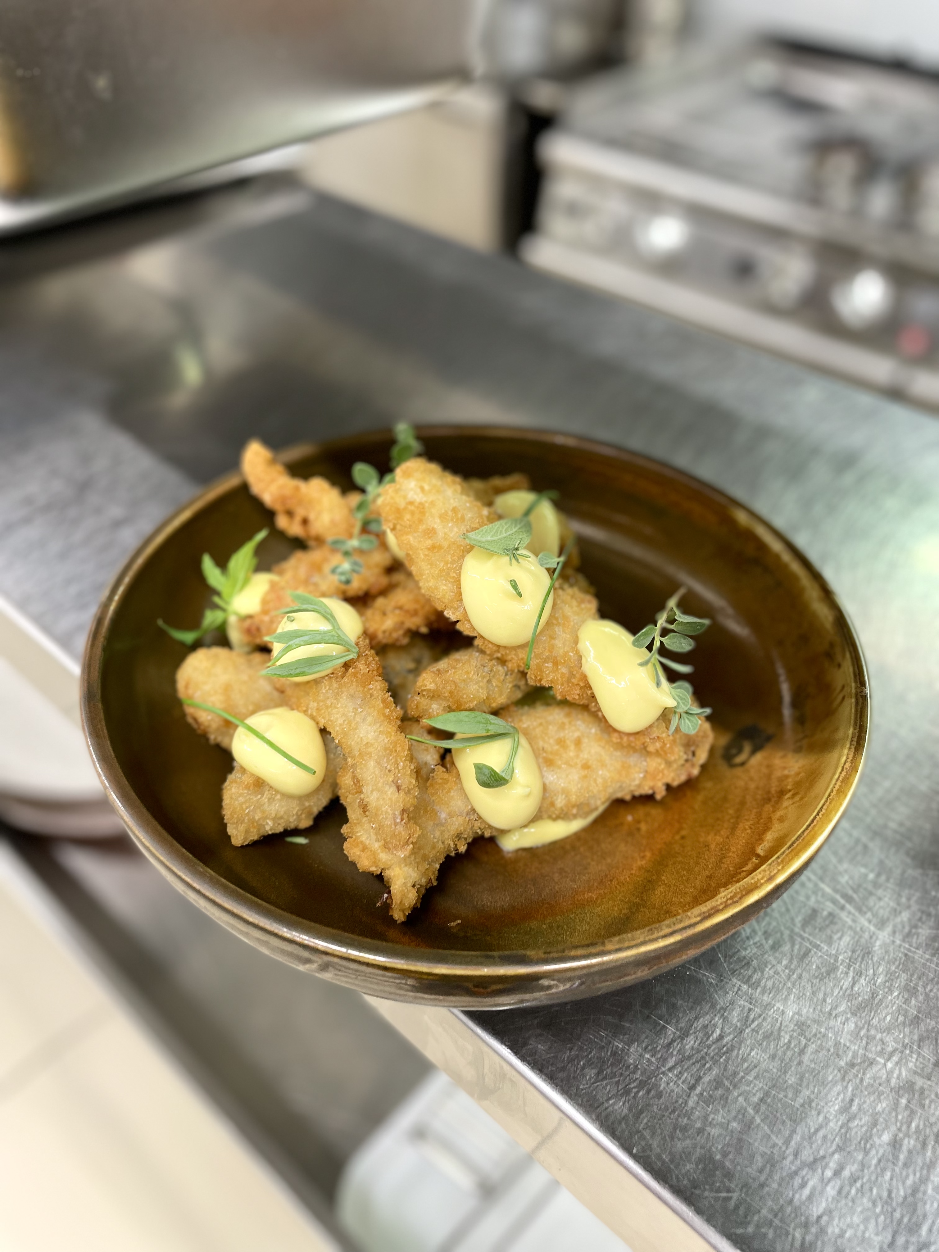 «Il locale è nato con una parte bar molto importante», spiega la chef «e utilizziamo molto le tapas sia per l’aperitivo che per la cena». Ad aiutarla in sala c’è Federica Andree Trinca, classe ’98, che cura anche la carta dei vini con un occhio di riguardo verso i piccoli produttori del Lazio. Valentina invece si dedica a proporre una cucina mediterranea molto selezionata, con ingredienti di prima qualità. «L’offerta del menù attualmente si compone di dieci tipi di tapas, 4 primi, 4 secondi e 4 dolci. La maggior parte delle cose che proponiamo sono fatte da noi, compresi pane e focacce che preparo io. Inoltre ogni due settimane cambiamo le tapas». L’idea di proporre tapas e menù “corto” rientra in quel metodo di lavoro sostenibile e fatto di ricerca che piace tanto a Valentina. «Ma trovo piacevole anche il messaggio di convivialità e condivisione che trasmette un tavolo che si riempie di tapas», aggiunge.